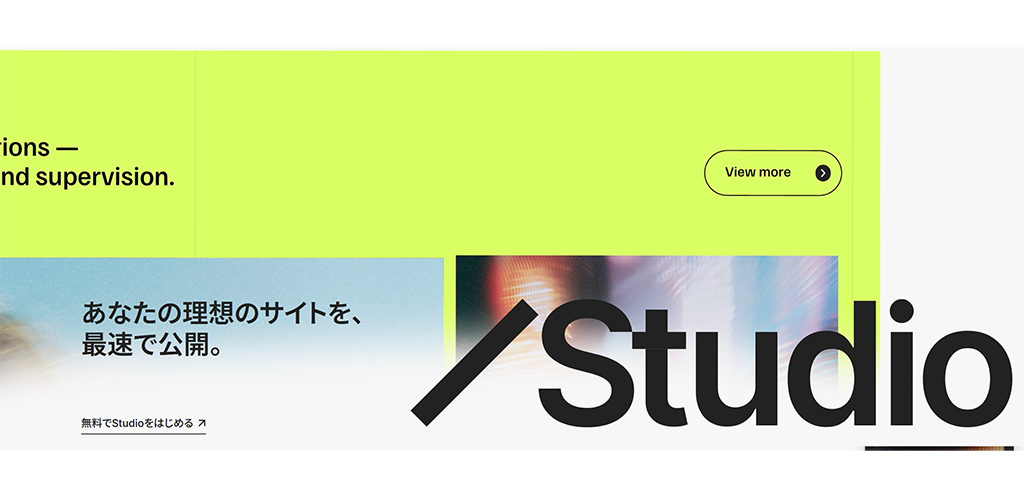 デザインにこだわりたい層から絶大な支持を得ているのが、日本発のSTUDIO(スタジオ)です。これまでの「テンプレートを選ぶ」という概念から、「自由に絵を描くようにサイトを作る」という体験にシフトさせてくれました。