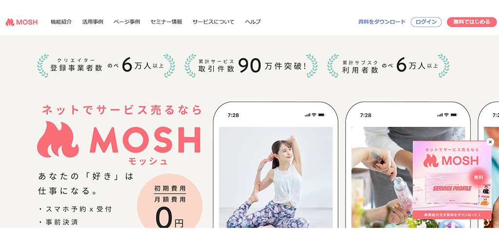 | MOSH | 0円(決済手数料別) | スキル・サービス販売特化。予約・決済をリンク一つで。 | ヨガ・コーチング等の講師 |