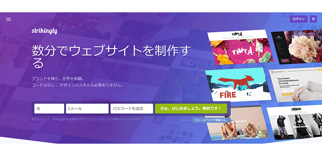 | Strikingly | 0円〜 | 洗練された1枚サイト。スクロールで魅せるUX。 | モダンなLPを作りたい |