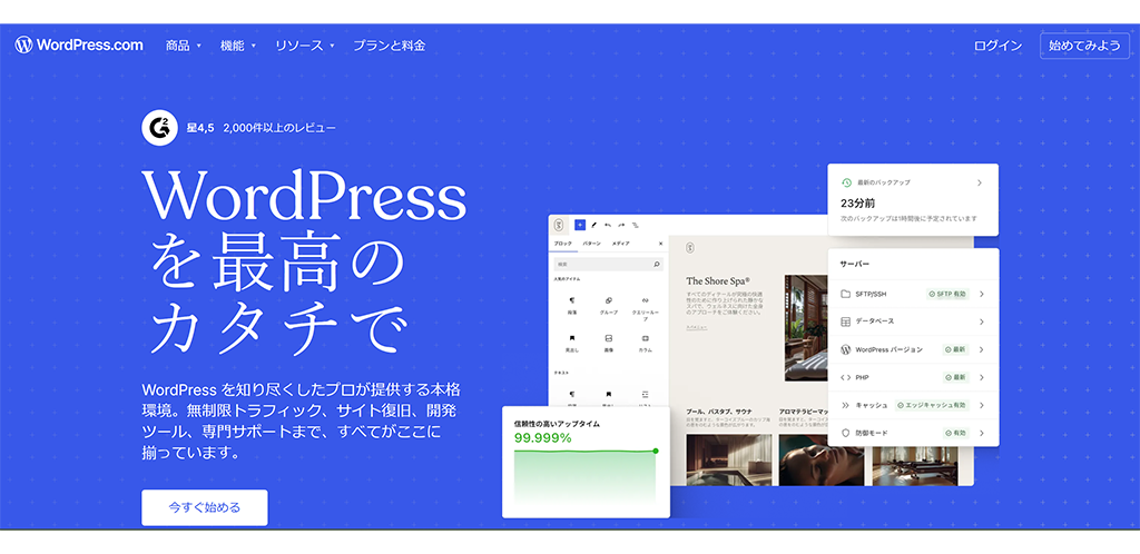 後者の「WordPress.com」は、WordPressの持つ強力な拡張性はそのままに、面倒なサーバーの保守やセキュリティアップデートをすべて運営元(Automattic社)に任せられる「フルマネージド」な環境が最大の特徴です。