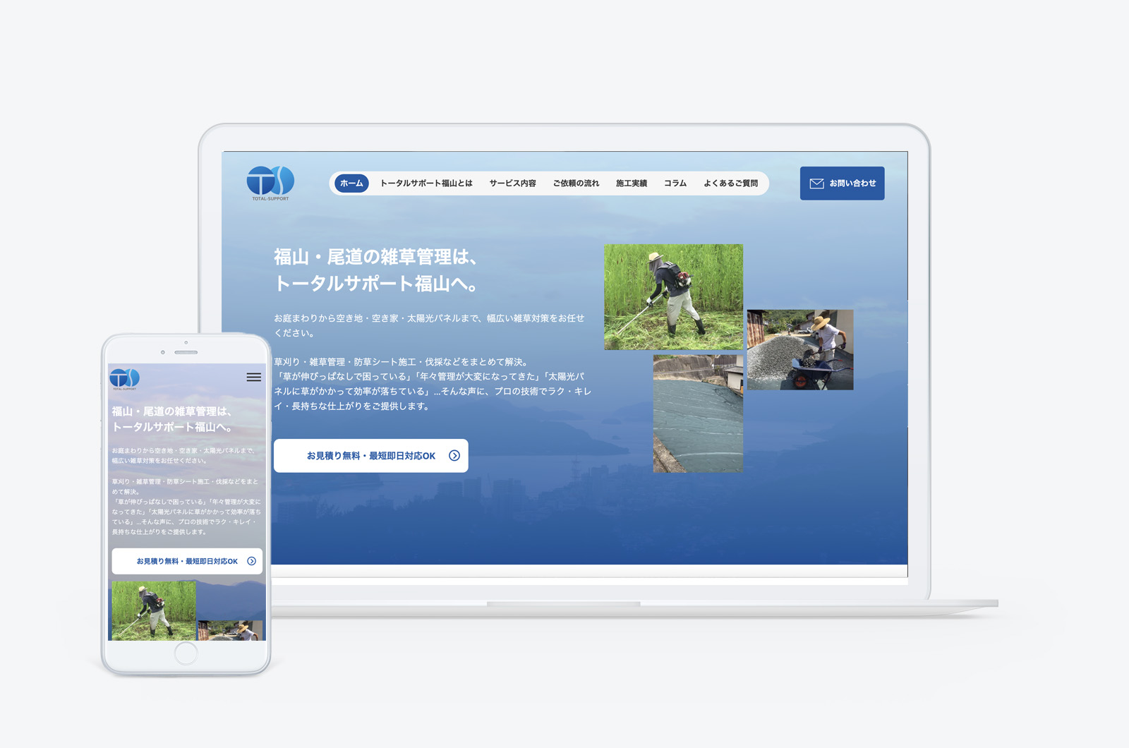 広島県福山市の草刈り&造園業「トータルサポート福山」のホームページ制作を承りました。